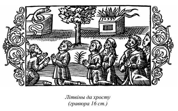 Такую ж фразеалогію папская курыя і крыжакі ўжывалі да літвінаў здаўна. Гэтак, яшчэ ў 1249 г. ліфлянцкі ляндмайстар Стырлянд патрабаваў ад вялікага князя Міндоўга прыняць "агульную хрысціянскую веру" [27]. Рызская капітула ў 1298 г. пісала аб патрэбнасці пераходу літвінаў ад "прымхлівых абрадаў" (ritus superstitiosos), "аблуднай сэкты" (erronee secte) да "артадаксальнай веры" (ortodoxe fidei) [28]. Папеж Ян ХХІІ у 1317 г. заклікаў вялікага князя Гедыміна адмовіцца ад "цемры аблуд" (cecitatis errore) ды прыняць "ісціну каталіцкае веры" (catholice fidei veritatem) [29]. У 1324 г. папеж пісаў аб патрэбнасці пераходу літвы "з цемры нявер'я да артадаксальнай веры" (...gentes, infidelitatis tenebris involutas, ad fidem pertrahere orthodoxam), да "адзінства хрысціянскай веры" (unitatem fidei christiane), да "вяртання да святла праўдзівае веры" (redeuntibus ad fidei vere lumen) [30]. У 1349 г. папеж Клімент VI заклікаў літоўскіх князёў перайсці ад "улады д'ябла" і "цемры аблуд" да "нашай веры" (nostre fidei), "ісціны каталіцкае веры" (catholice fidei) [31]. У 1357 г. польскі кароль Казімір пісаў папежу аб сваіх высілках дзеля пераводу "няверных" (infideles) літвінаў "да артадаксальнай веры" (ad fidei ortodoxe cultum) [32]. У 1373 г. папеж Грыгор ХІ заклікаў літоўскіх князёў пакінуць "хлусню д'ябла" і "аблуды нявер'я" (infidelitatis errorem) ды далучыцца да "каталіцкай веры" (fidem catholicam) [33].