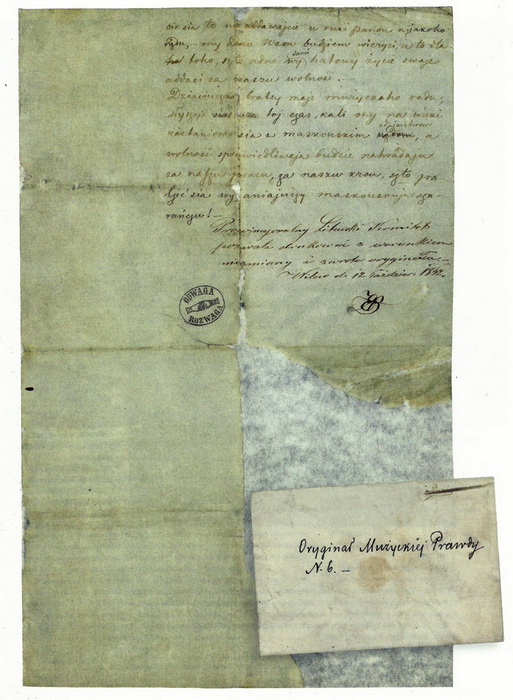 У 1989 годзе ў Вільні ў касцёле Святога Францыска Асізскага, больш вядомым як Бернардынскі, быў знойдзены рукапісны дакумент пад назваю “№6 Мужыцкая праўда”. Яго змест цалкам адрозніваецца ад надрукаванага нумару газеты, які з’явіўся ў снежні 1862 года, і быў прысвечаны светапогляду селяніна і ўніяцкай веры.